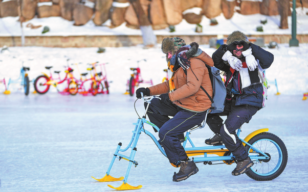 Чуждестранни туристи карат леден велосипед на 8 януари на живописното място Sun Island в Харбин, столицата на провинция Heilongjiang. Продължаващото изложение на изкуството на снежни скулптури на живописното място привлича посетители към зашеметяващите ледени и снежни пейзажи. УАН ДЗЯНВЕЙ/СИНХУА Силен трактор ръмжи през обширното снежно поле, теглейки две виещи се верижки от авантюристи. Всяка от…