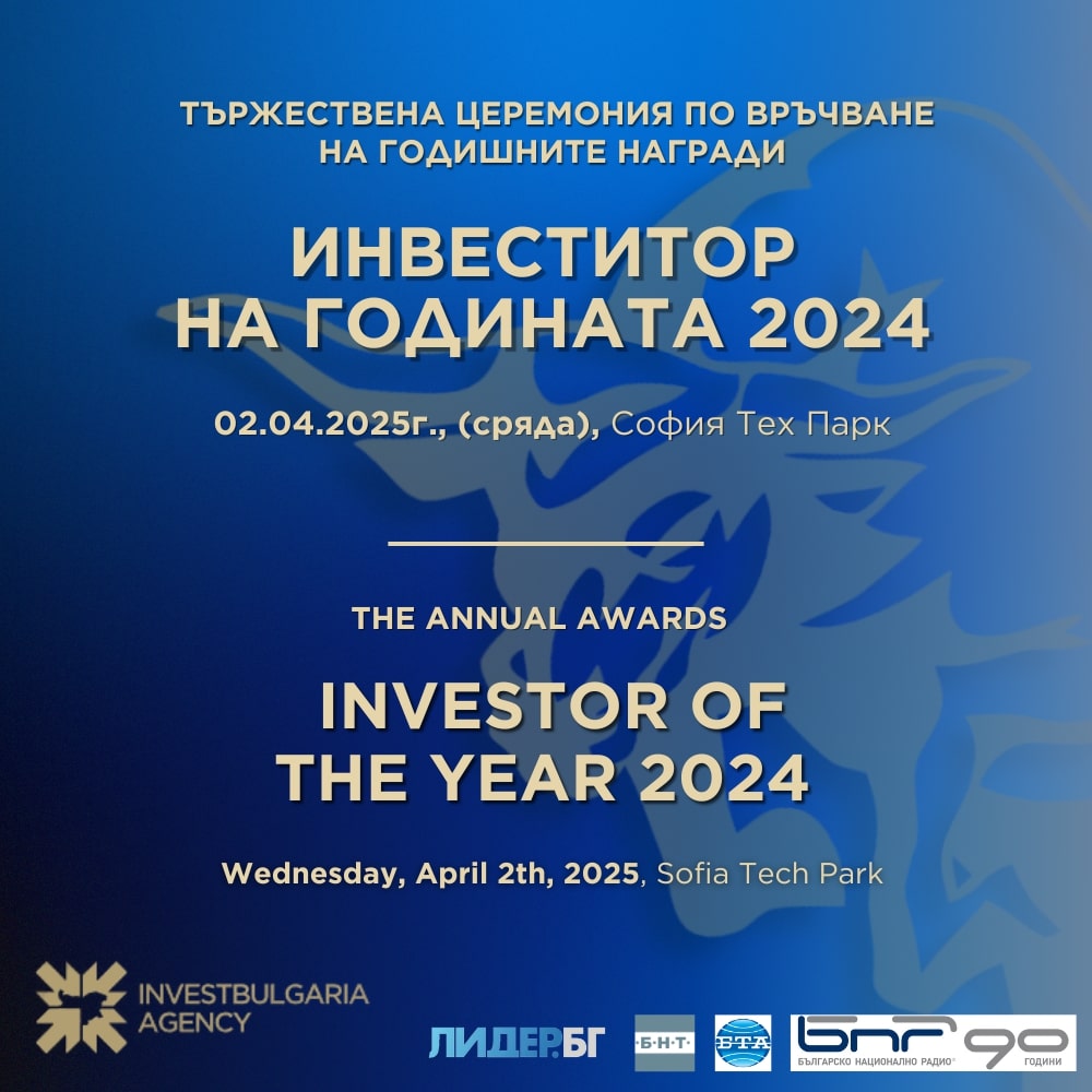 Българската агенция за инвестиции (БАИ) организира за деветнадесети пореден път годишните награди „Инвеститор на годината“ – най-престижния форум, който отличава значимите инвестиционни проекти, реализирани през 2024 г. Кога? 2 април 2025 г. Къде? София Тех Парк С това събитие БАИ изразява признателността си към компаниите, които със своите инвестиции допринасят за устойчивото икономическо развитие на…