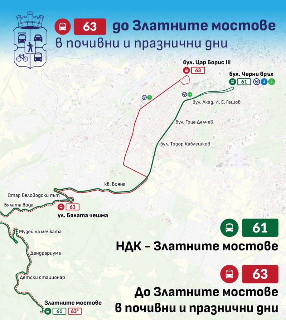 Столичната община предлага автобусна линия № 63 да се движи до м. Златните мостове през почивните дни